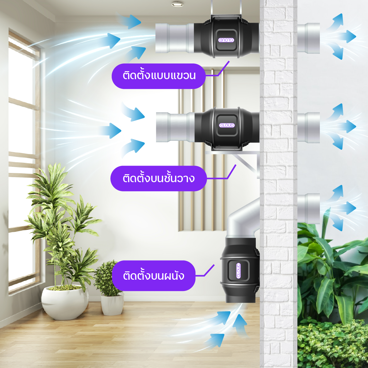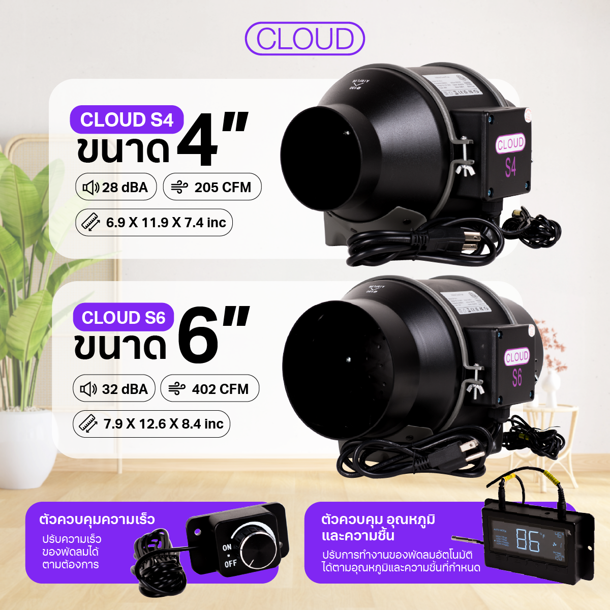 CLOUDLINE พัดลมดูดอากาศอินไลน์ พร้อมตัวควบคุมอุณหภูมิและความชื้น รุ่นใหม่เงียบลงกว่าเดิม 30%