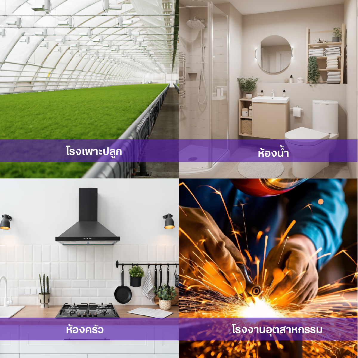 • Temperature and Humidity Controller : สามารถตั้งค่าการเปิด - ปิดตามอุณหภูมิและความชื้นที่ตั้งค่าไว้ได้ ใช้งานง่าย สะดวกด้วยการทำงานอัตโนมัติ