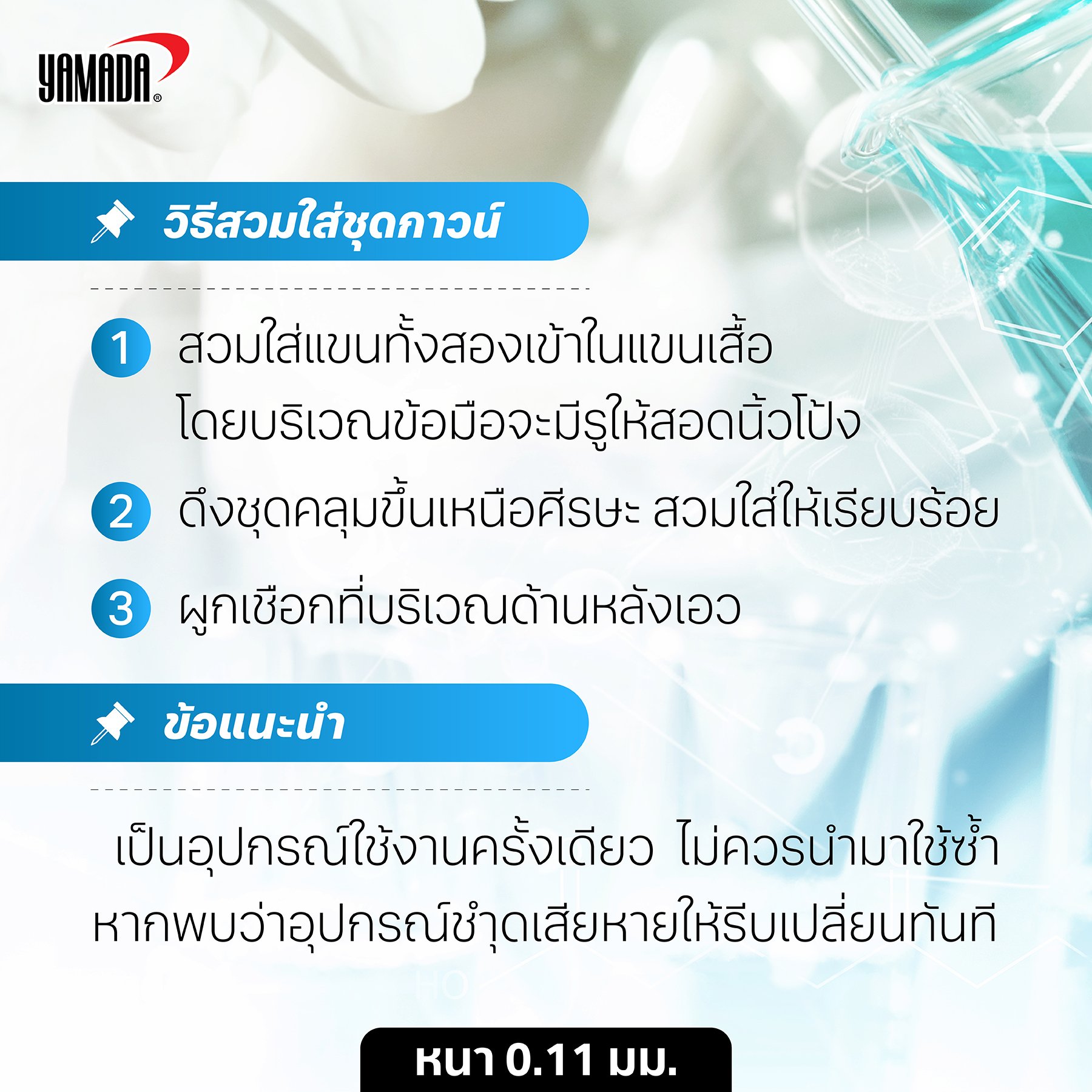 – เป็นชุดป้องกัน ใช้ได้ครั้งเดียวแล้วต้องทิ้ง
