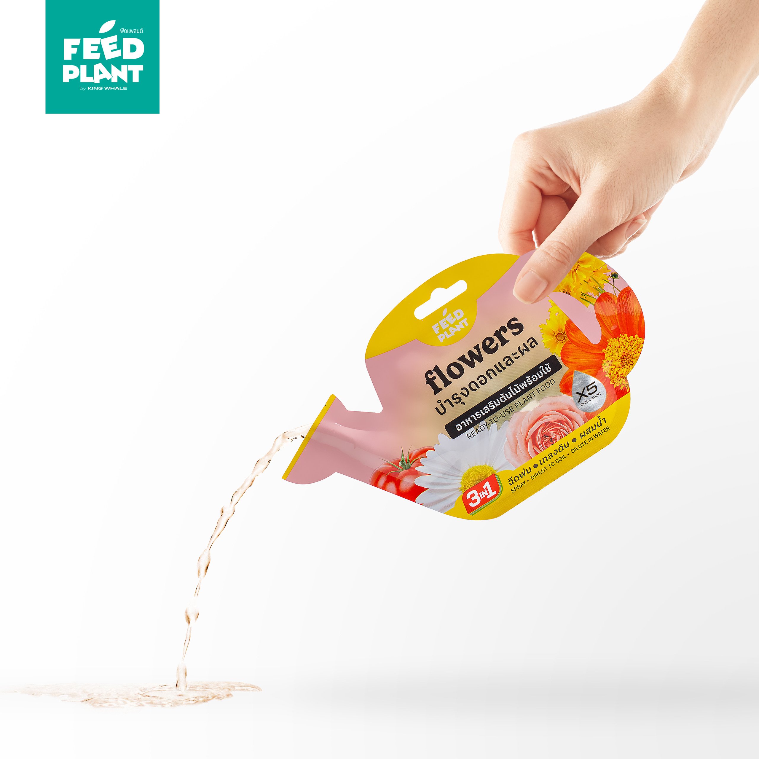 2. FEED PLANT สูตร Flowers : ช่วยเร่งการออกดอก, ติดผล, เพิ่มความแข็งแรงของดอกและผล, ลดการหลุดร่วงของดอก ใช้ได้กับ พืชดอกและพืชที่ออกผล (ไม้ดอก, ไม้ประดับ, ไม้ผล)