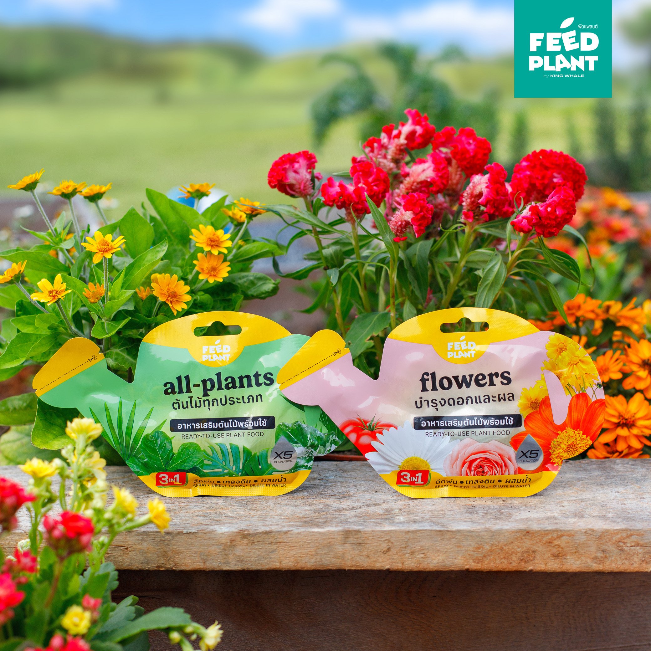 1. FEED PLANT สูตร All Plants : บำรุงต้นไม้ให้แข็งแรง, ส่งเสริมการเจริญเติบโต, เพิ่มประสิทธิภาพการดูดซึมธาตุอาหาร ใช้ได้กับ พืชทุกประเภท (ไม้ใบ, ไม้ดอก, ไม้ผล, พืชผักสวนครัว)