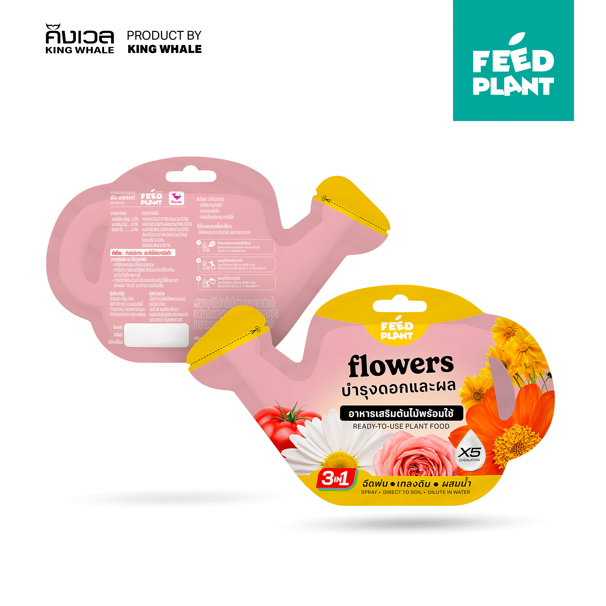 Feed Plant เป็นผลิตภัณฑ์อาหารเสริมต้นไม้ที่พัฒนาเพื่อช่วยบำรุงพืชให้เติบโตแข็งแรง เพิ่มประสิทธิภาพการดูดซึมสารอาหาร และให้ผลลัพธ์ที่รวดเร็ว ด้วยเทคโนโลยี X5 Chelation ที่ช่วยให้พืชนำธาตุอาหารไปใช้ได้อย่างเต็มที่ พร้อมนวัตกรรม Calcium-Sulfate Fusion Technology ที่รวม แคลเซียม (Ca) และซัลเฟอร์ (S) เข้มข้นไว้ในสูตรเดียว ช่วยเสริมสร้างโครงสร้างพืชให้แข็งแรง ลดปัญหาผลแตก และกระตุ้นการออกดอก โดยมีทั้งหมด 2 สูตร ได้แก่