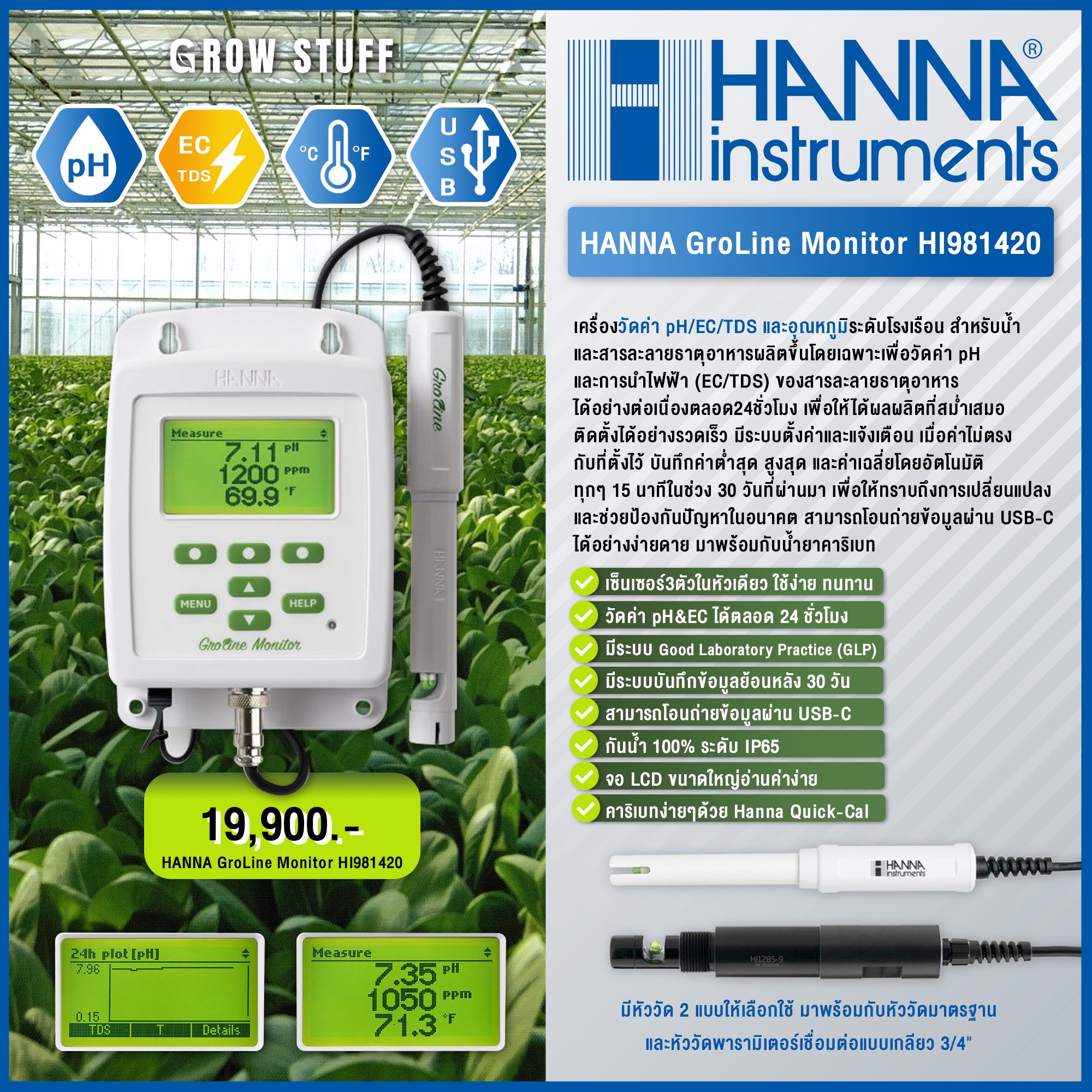 HANNA HI50036P Quick Calibration Solution น้ำยาคาริเบท สำหรับ Groline เป็นน้ำยา Buffer สำหรับเครื่องวัด pH และ EC แบบ 2 IN 1 ด้วยน้ำยาเพียงขวดเดียว มีค่า pH calibration buffer value of pH 6.86 มีค่า EC 5,000 μS/cm (5.00 mS/cm) ผลิตตามมาตรฐาน NIST สามารถตรวจสอบย้อนกลับได้และมีใบรับรองการวิเคราะห์สอบเทียบ Certificate of Analysis และระบุวันที่หมดอายุไว้อย่างชัดเจนบนฉลาก อีกทั้งขวดยังมีการปิดผนึกเป็นพิเศษเพื่อป้องกันการปลอมแปลงเพื่อให้มั่นใจในคุณภาพ ได้รับการจัดทำขึ้นมาเป็นพิเศษผลิตตามมาตรฐาน ISO3696/BS3978 โดยใช้เกลือที่มีความบริสุทธิ์สูง น้ำ Deionized เครื่องชั่งน้ำหนักที่ได้รับการรับรองในสภาพแวดล้อมที่ควบคุมอุณหภูมิด้วยเครื่องวัดอุณหภูมิที่ผ่านการรับรอง และสามารถตรวจสอบย้อนกลับได้จากวัสดุอ้างอิงมาตรฐาน NIST (SRM)