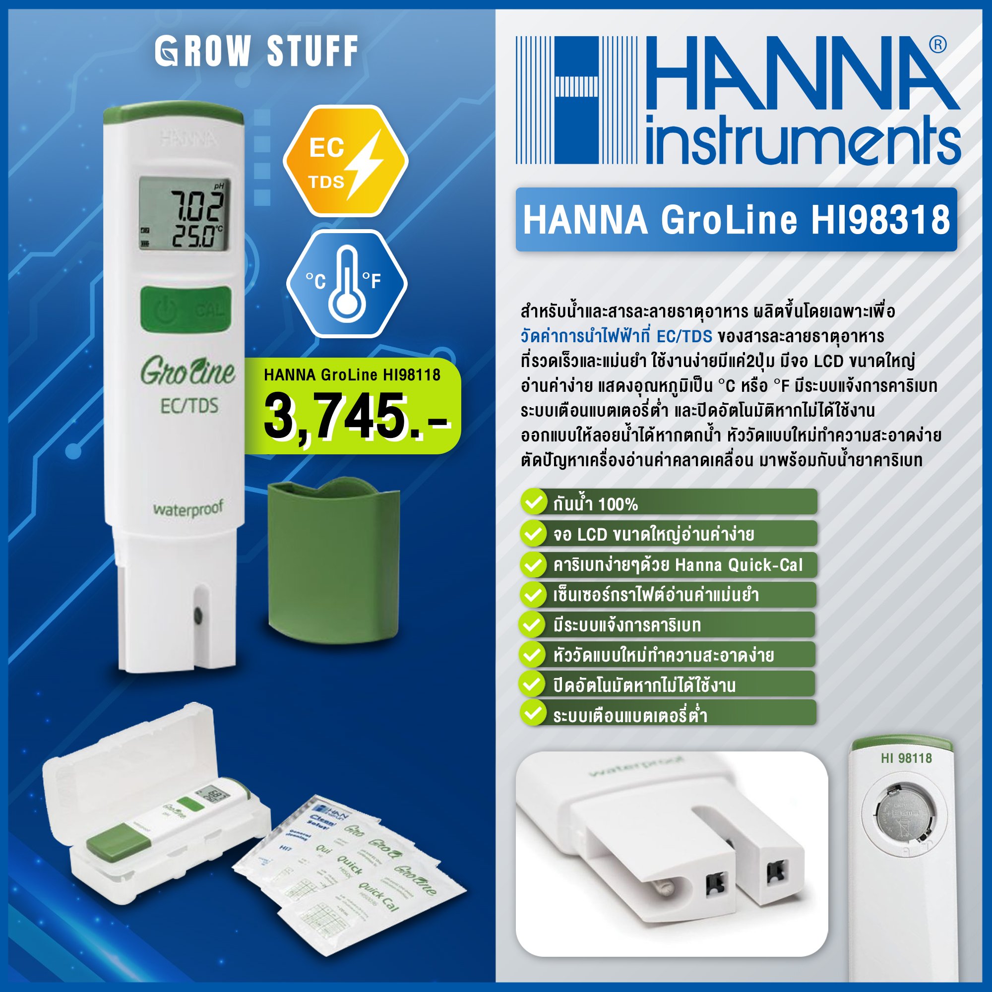 HANNA HI50036P Quick Calibration Solution น้ำยาคาริเบท สำหรับ Groline เป็นน้ำยา Buffer สำหรับเครื่องวัด pH และ EC แบบ 2 IN 1 ด้วยน้ำยาเพียงขวดเดียว มีค่า pH calibration buffer value of pH 6.86 มีค่า EC 5,000 μS/cm (5.00 mS/cm) ผลิตตามมาตรฐาน NIST สามารถตรวจสอบย้อนกลับได้และมีใบรับรองการวิเคราะห์สอบเทียบ Certificate of Analysis และระบุวันที่หมดอายุไว้อย่างชัดเจนบนฉลาก อีกทั้งขวดยังมีการปิดผนึกเป็นพิเศษเพื่อป้องกันการปลอมแปลงเพื่อให้มั่นใจในคุณภาพ ได้รับการจัดทำขึ้นมาเป็นพิเศษผลิตตามมาตรฐาน ISO3696/BS3978 โดยใช้เกลือที่มีความบริสุทธิ์สูง น้ำ Deionized เครื่องชั่งน้ำหนักที่ได้รับการรับรองในสภาพแวดล้อมที่ควบคุมอุณหภูมิด้วยเครื่องวัดอุณหภูมิที่ผ่านการรับรอง และสามารถตรวจสอบย้อนกลับได้จากวัสดุอ้างอิงมาตรฐาน NIST (SRM)