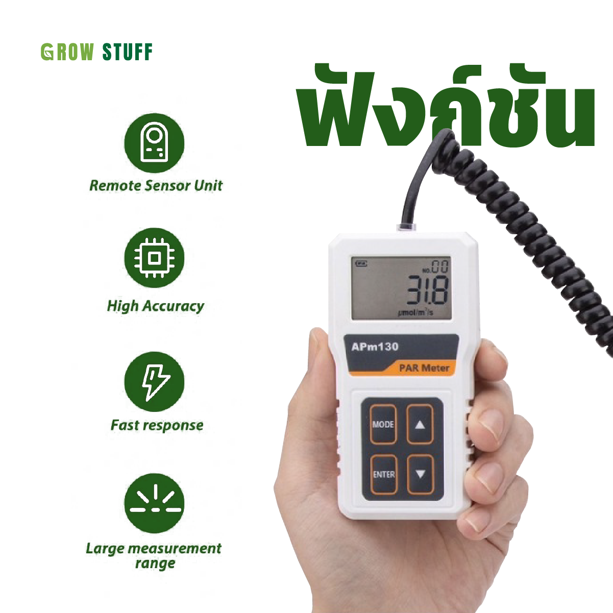 🔆 มิเตอร์วัดค่าแสงหน่วย PPFD แบบพาพก มีเซ็นเซอร์ควอนตัมความแม่นยำสูง 🔆